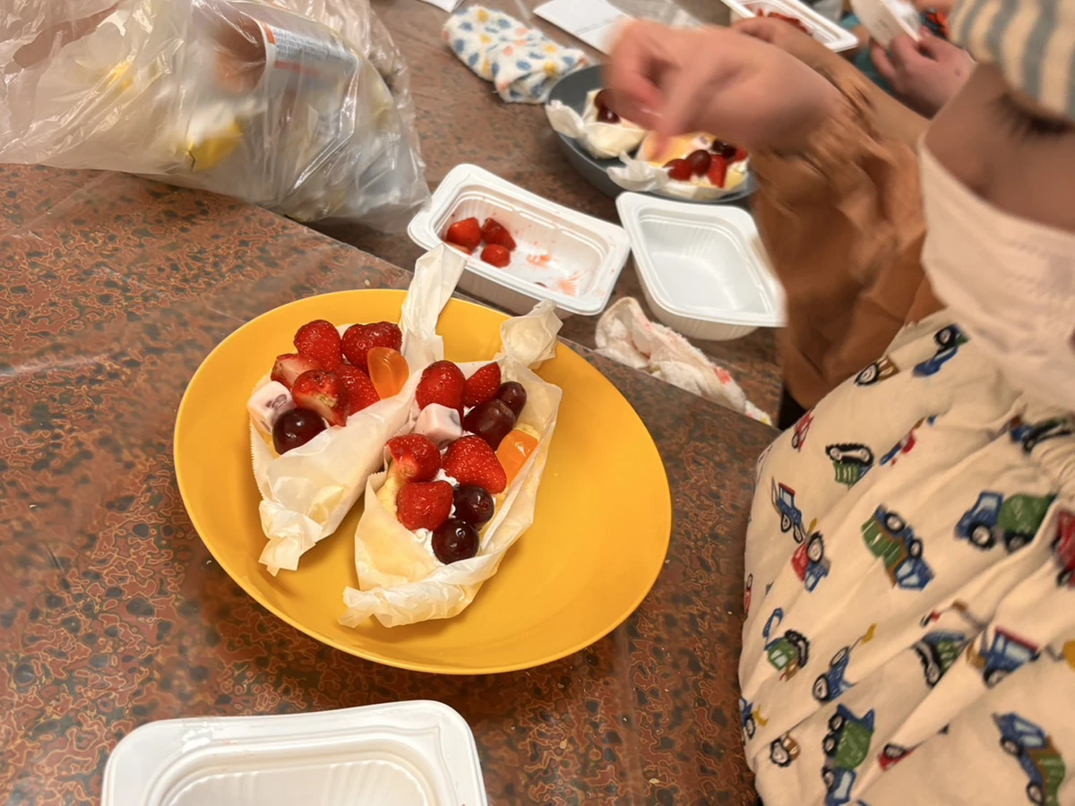 月に1度、午前の部の児童はデザート作りを行います。午後の部の児童は、お菓子作りを行います。様々な食材に触れる機会を設けることで、食への興味・関心の幅を広げると共に食の大切さ、ありがたさを身につけられるよう支援して参ります。また、五感を刺激することで脳への活性化を図ります。目で見て「できた」の喜びや他児と協力し合うことの大切さ・ルールや待つことの理解等も学べるように支援して参ります。