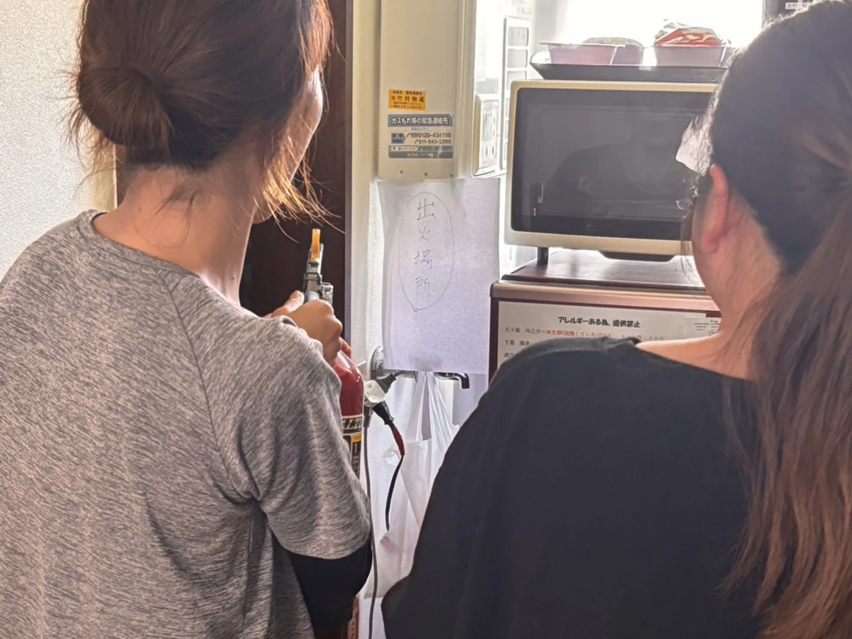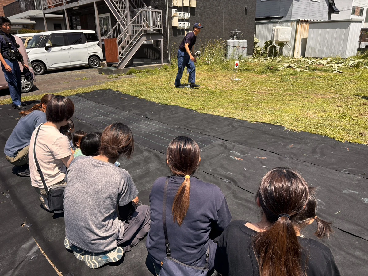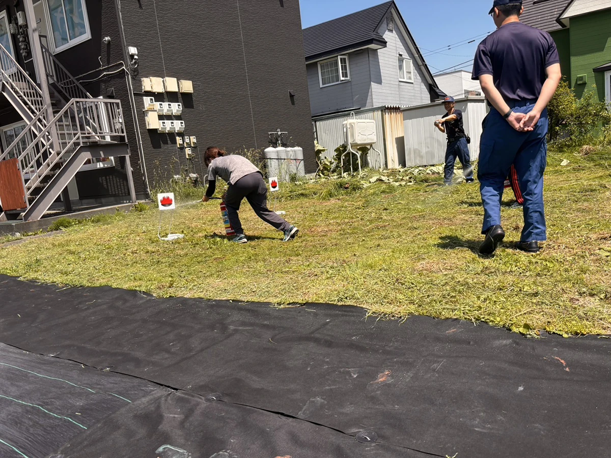児童も含めた避難訓練を実施しています。消防士の方から直接指導を受けて行っています。